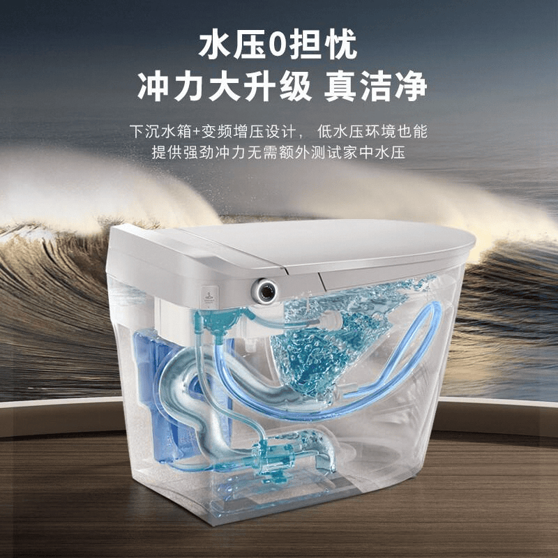 2.无水压静音冲水,安静享受每一刻:这款智能马桶采用无水压静音冲水技术,不管水压高低,都能保证冲水时的安静,不会打扰到你或家人的休息。而且,它还能不挑环境,无论是城市还是农村,都能完美适应。